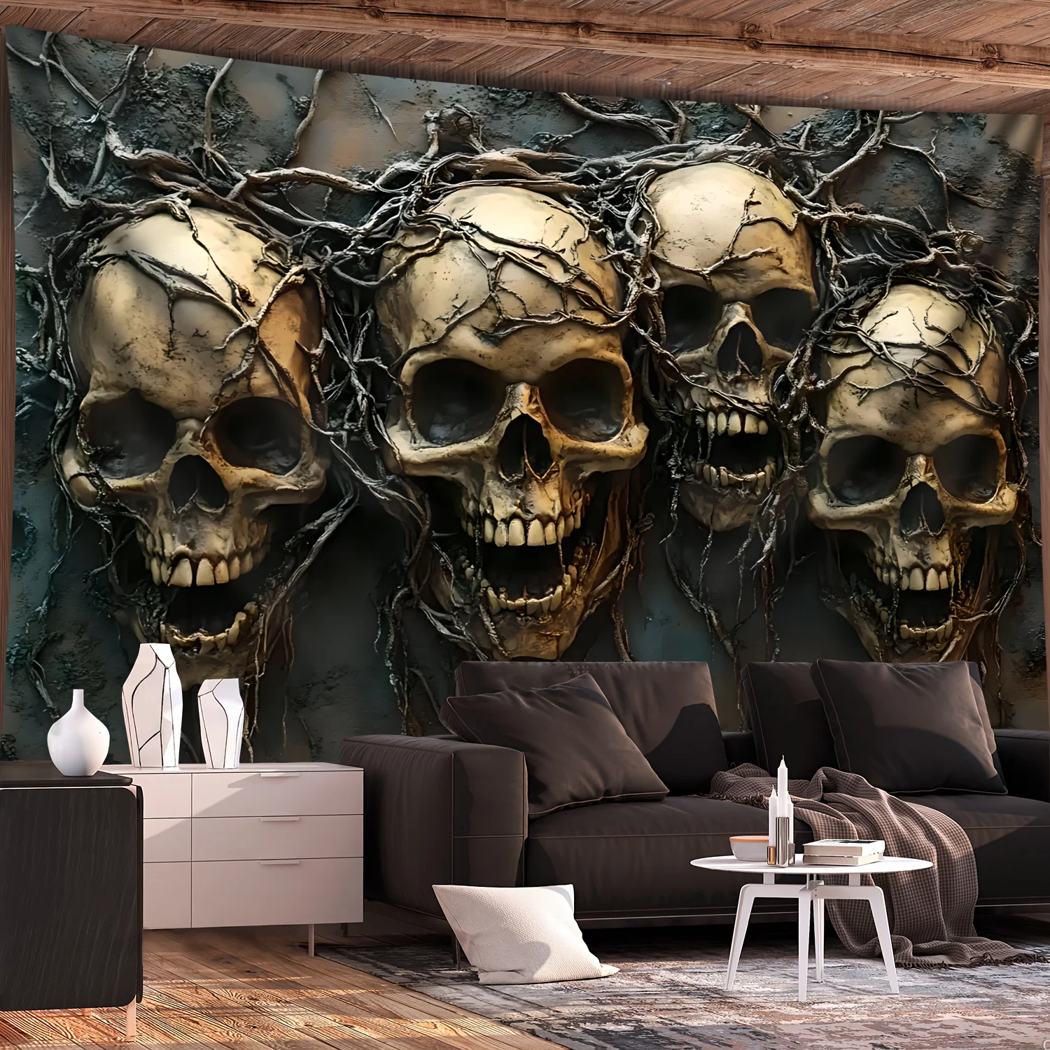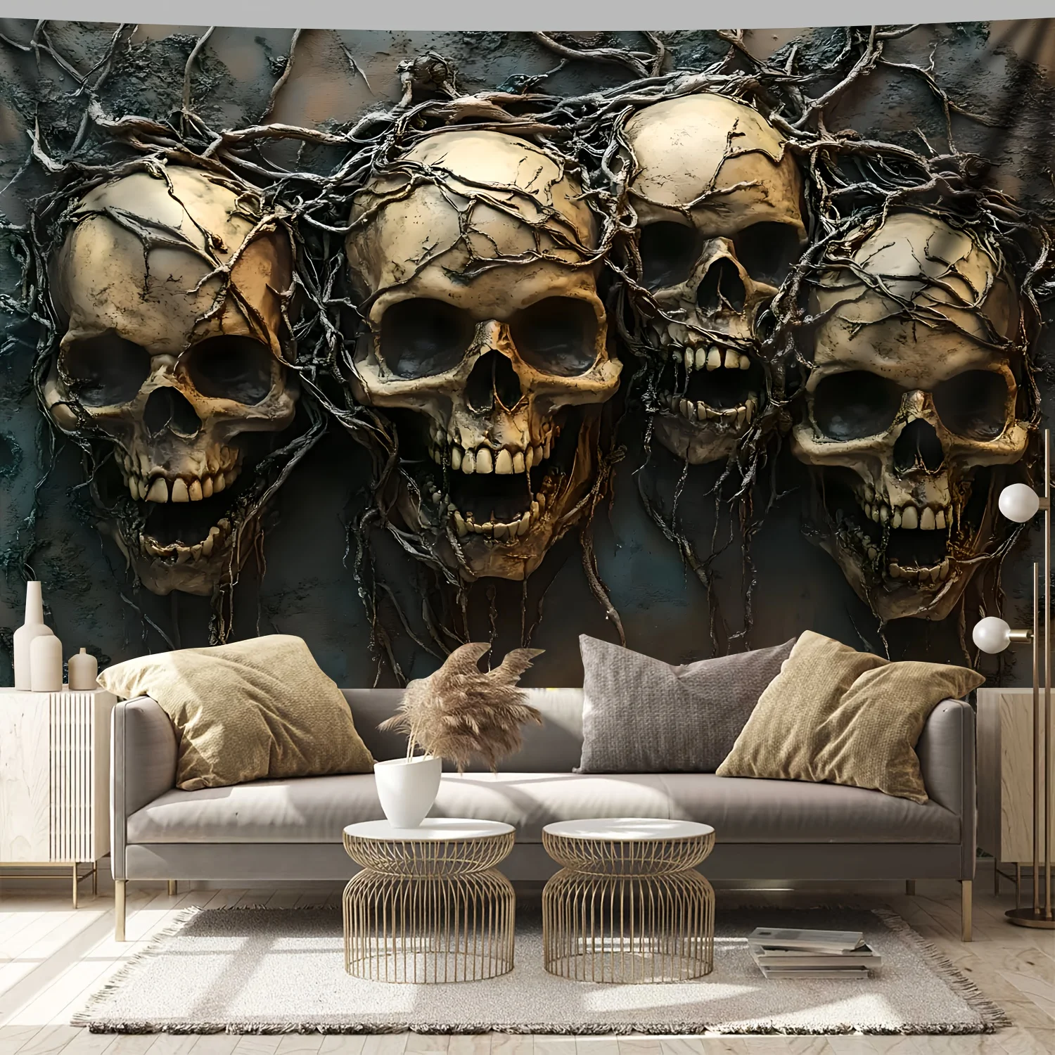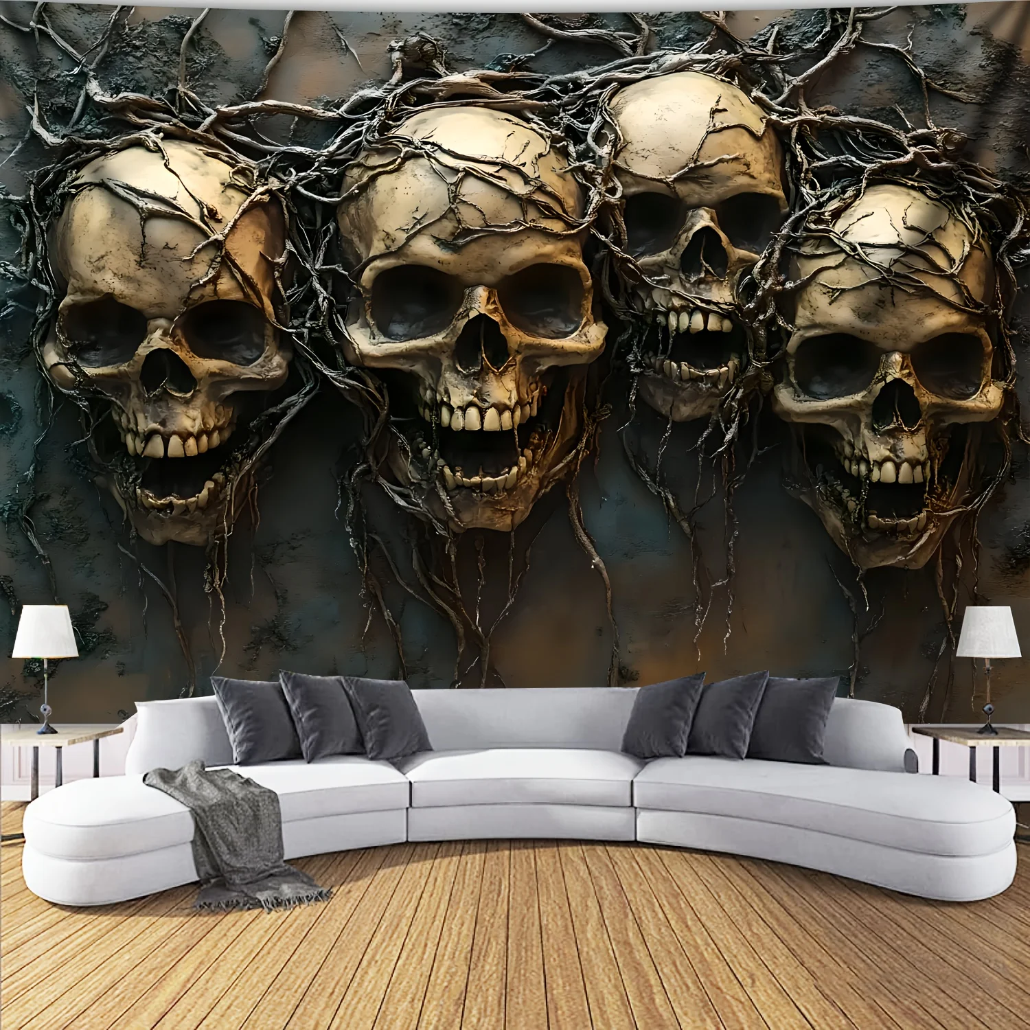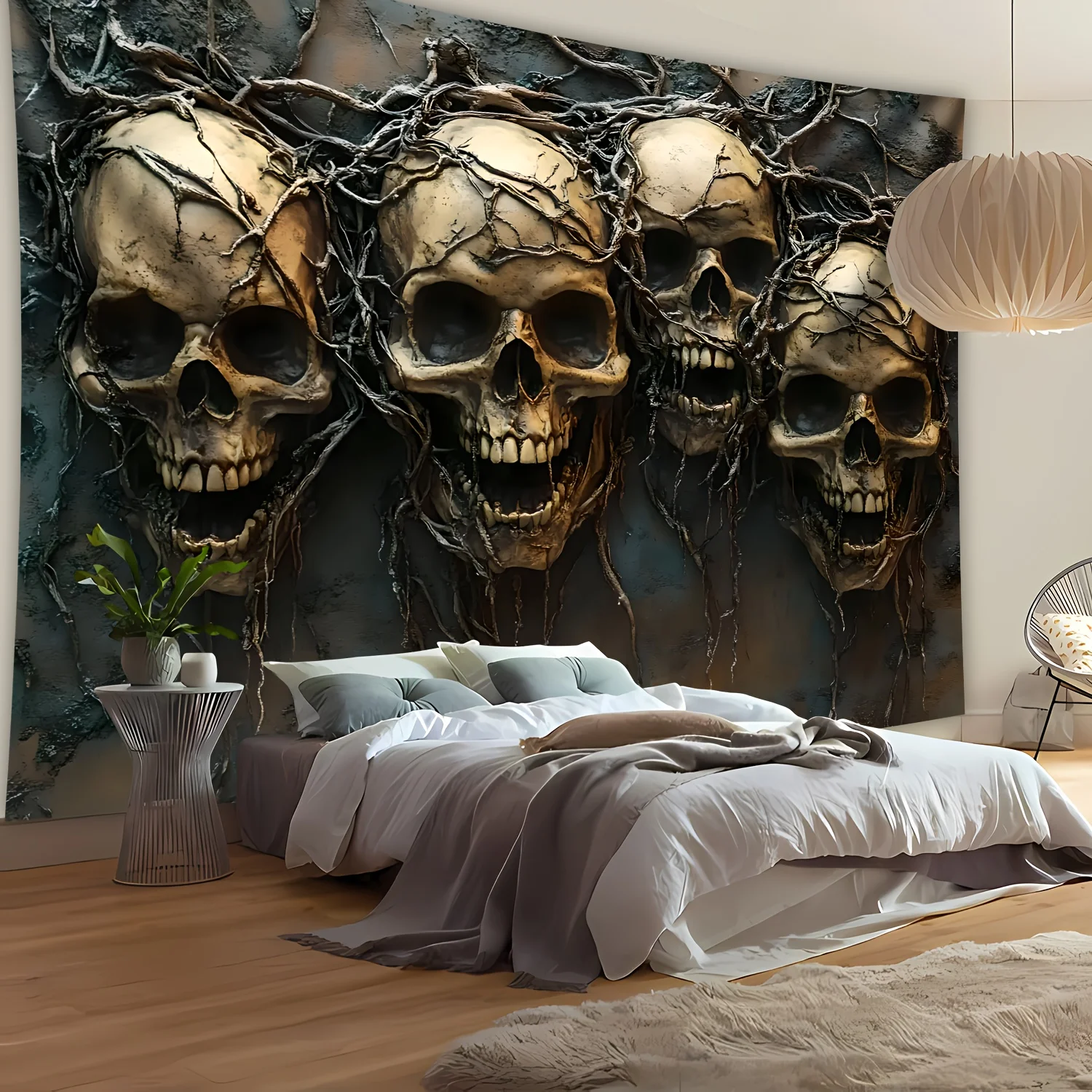 Gothic Skull & Vine Wall Tapestry – Fantasy Horror Home Decor for Bedroom or Living Room
